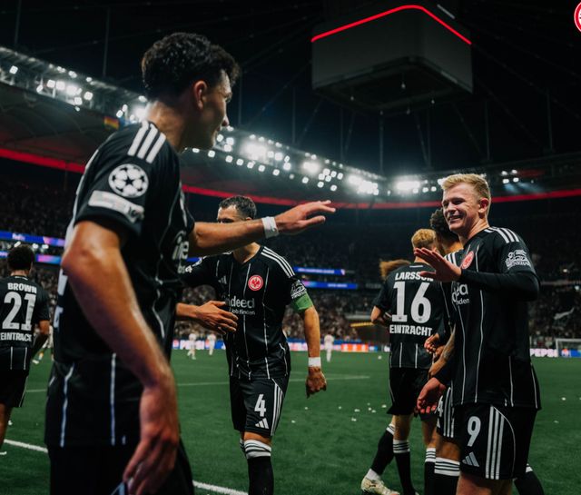 全场5次射正,5-1大胜,法兰克福诠释何为高效。德意志银行公园球场的5万法兰克福球迷,摇旗呐喊,高歌不止,疯狂庆祝欧冠开门红!法兰克福球员站成一排,与球迷分享这美妙的欧冠狂欢之夜。
