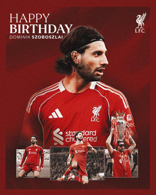 雷速体育10月25日宣 今天是利物浦中场球员索博斯洛伊的25岁生日,俱乐部官方发布定制海报,向这位匈牙利球员表示祝贺。