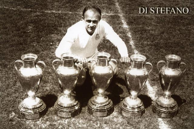 1953年9月23日,迪斯蒂法诺在对阵南锡的热身赛中首次代表皇马出场,他头球攻入个人皇马生涯首球。迪斯蒂法诺于1953年-1964年效力皇马,在396场正式比赛中攻入308球,这位史上最出色球员带队获得欧冠五连冠,他还获得1次洲际杯冠军、2次拉丁杯冠军、8次联赛冠军等荣誉。个人层面,迪斯蒂法诺获得5次西甲金靴。