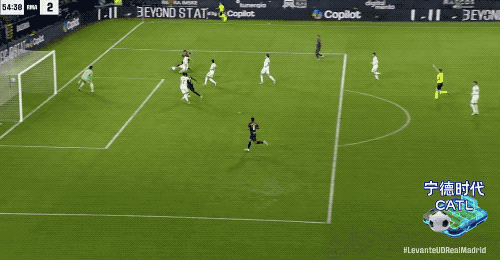 第28分钟,持续围攻的皇马,等到了莱万特防线的混乱,巴尔韦德前场抢断后及时传球,维尼修斯游走到了右路,外脚背巧射,打破僵局。