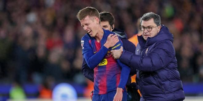 比赛中,达尼·奥尔莫在第65分钟打入关键反超球,帮助球队2比1领先。然而,他在进球后落地时肩部严重受伤,当场痛苦捂肩离场,表情扭曲,伤势显然不轻。目前俱乐部仍在等待医疗团队的详细诊断,据西班牙媒体报道,奥尔莫已确定提前告别2025年。