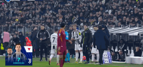 第62分钟,尤文换人,孔塞桑因伤被换下