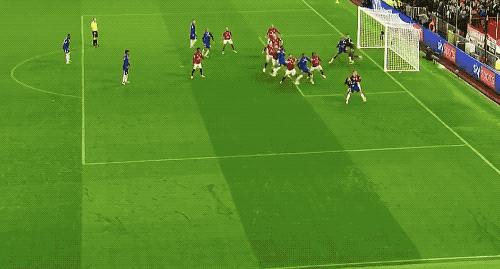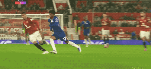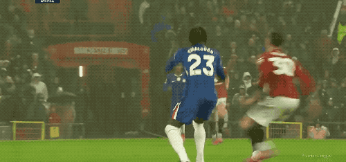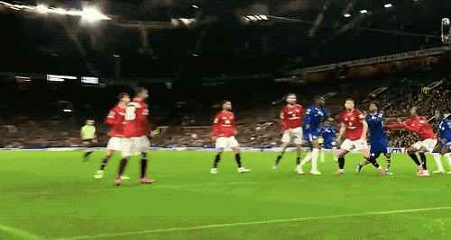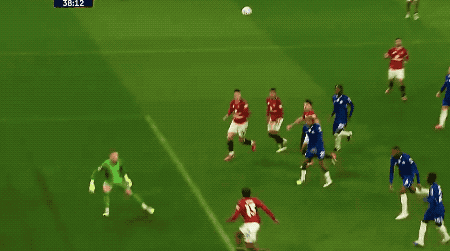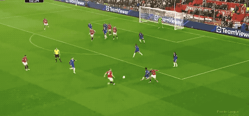 半场结束,曼联2-0领先切尔西。两队的射门次数9-2。下半场开始后,场面直接反转,控球权来到了切尔西这边,曼联成为被动的一方。