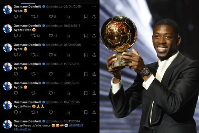 直播吧9月23日宣 马卡报消息,新科金球奖得主登贝莱曾是阿约泽-佩雷斯的粉丝。