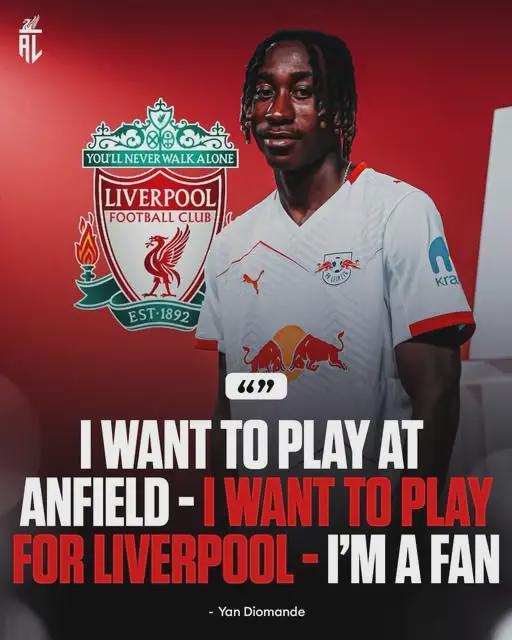据悉,利物浦对RB莱比锡前锋扬·迪奥曼德很感兴趣,而这位19岁的边锋透露,他的梦想就是为安菲尔德球队效力。近日,迪奥曼德在Instagram直播时用法语直言: