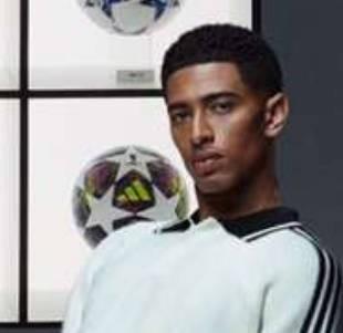 根据知名球衣装备网站Footy Headlines的最新报道,在贝林厄姆旁边的是本赛季的欧冠淘汰赛阶段用球,其采用了白色、深紫色、太阳黄和震撼粉的醒目配色。