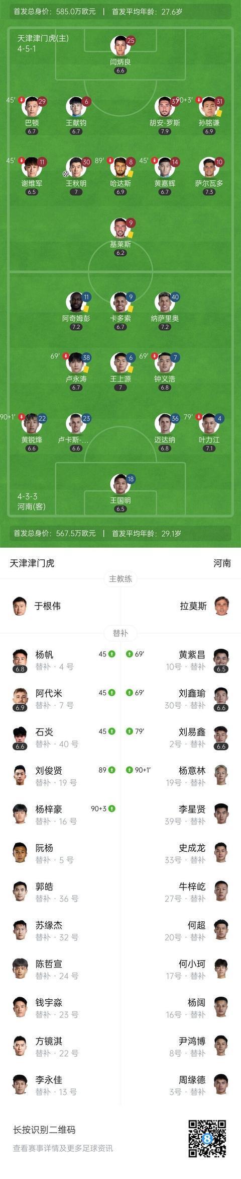 直播吧9月28日宣 北京时间9月28日晚上19:00,中超第26轮,天津津门虎坐镇天津奥体中心迎战河南。上半场,基莱斯越位干扰进球被吹无效,巴顿伤退。下半场,王国明送礼王秋明破门。全场结束,天津津门虎1-0河南。本场过后,天津津门虎积43分暂升至积分榜第5,河南积29分排名第11。