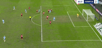 第83分钟,蓉城队连续解围没有化解险情!何超在禁区外凌空抽出一脚世界波,将比分改写成2-1!