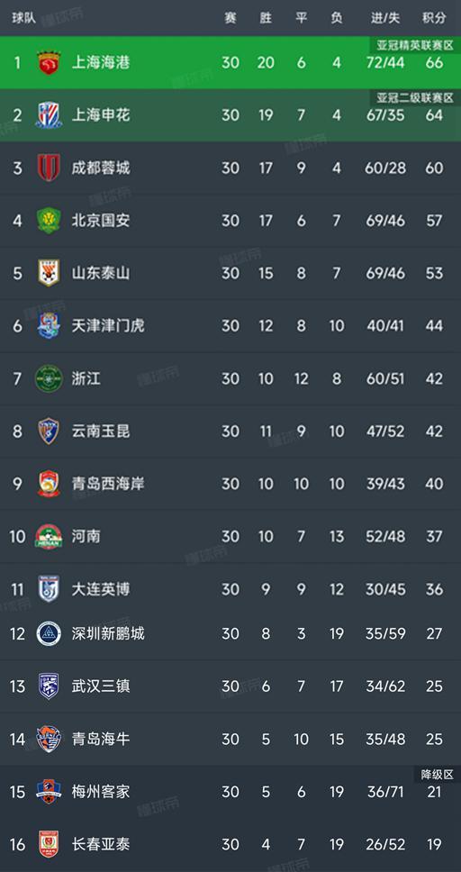 北京时间11月22日,中超第30轮迎来大结局,所有比赛结束,我们一起看看最终的积分榜!