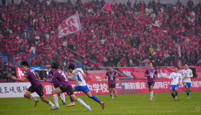 赛前,重庆奥体中心高级工程师梅修竹曾接受上游新闻记者采访,介绍早在11月中旬,工作人员就开始对球场草坪进行翻新,精准检修、调试各类显示屏及音响设备。这一切,似乎都为了更好地迎接这场跨越六年的“足球回家之约”。球迷的热情同样早已显现。12月1日门票开售仅半小时,门票就已售出3.2万张;不到一周时间,4.2万张球票全部售罄,创下“渝超”新的上座纪录,也让这场对决拥有了中超级别的热度。